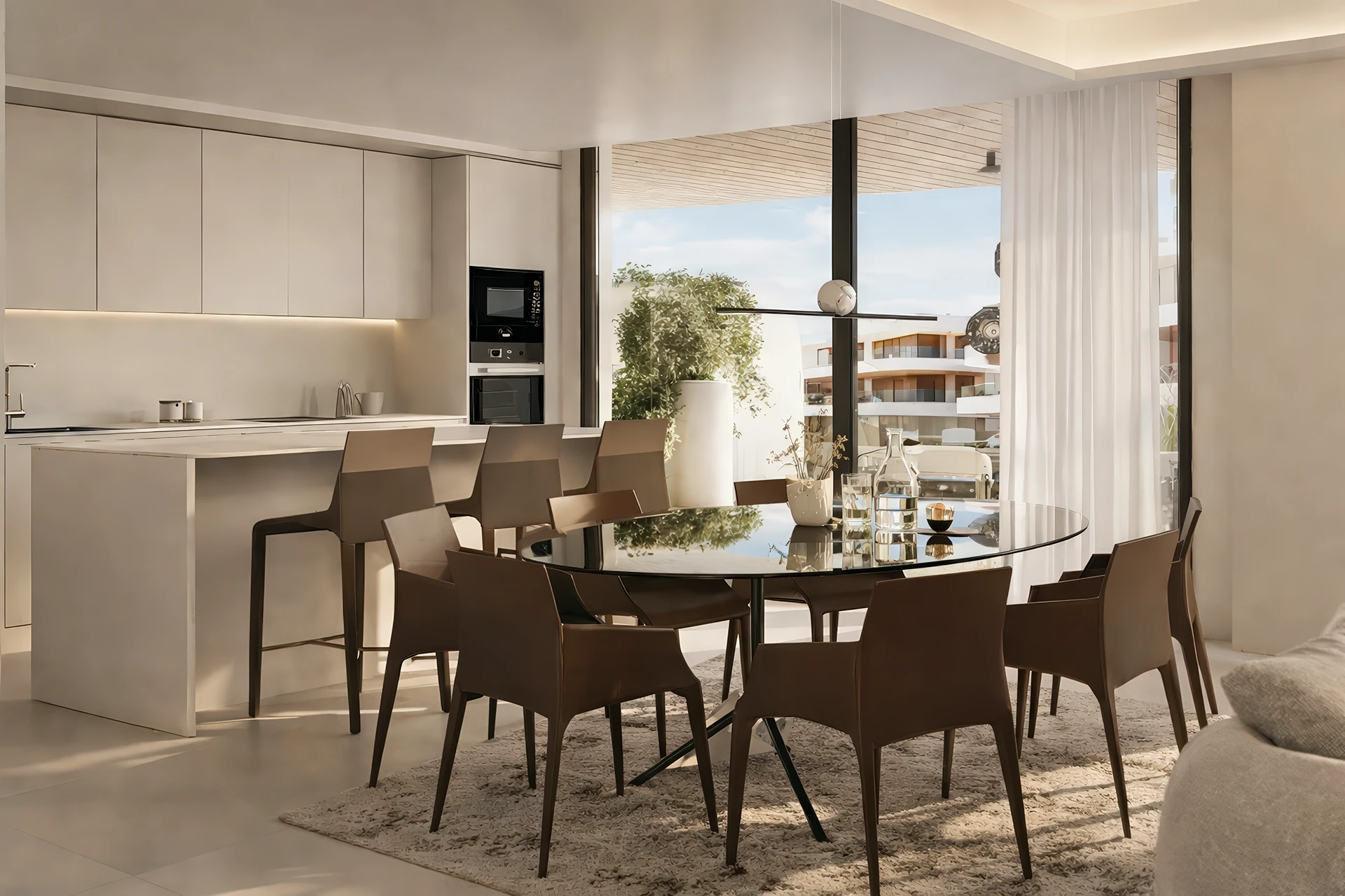 The architectural vision behind this project focuses on clean lines and floor-to-ceiling glazing that merges the interior with the horizon. These luxury residences offer between two and four bedrooms, with interior living areas reaching up to 250 m² and completion scheduled for the final quarter of 2026.