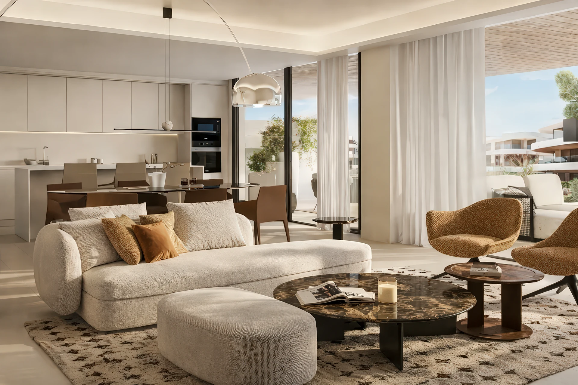 Every apartment in Benahavis features finishes from the prestigious Gunni & Trentino brand, adding a layer of tactile luxury to the everyday experience. Large, open-plan kitchens and minimalist bathrooms define the sophisticated character of these Benahavis apartments with sea views, ensuring each home feels both modern and timeless.
