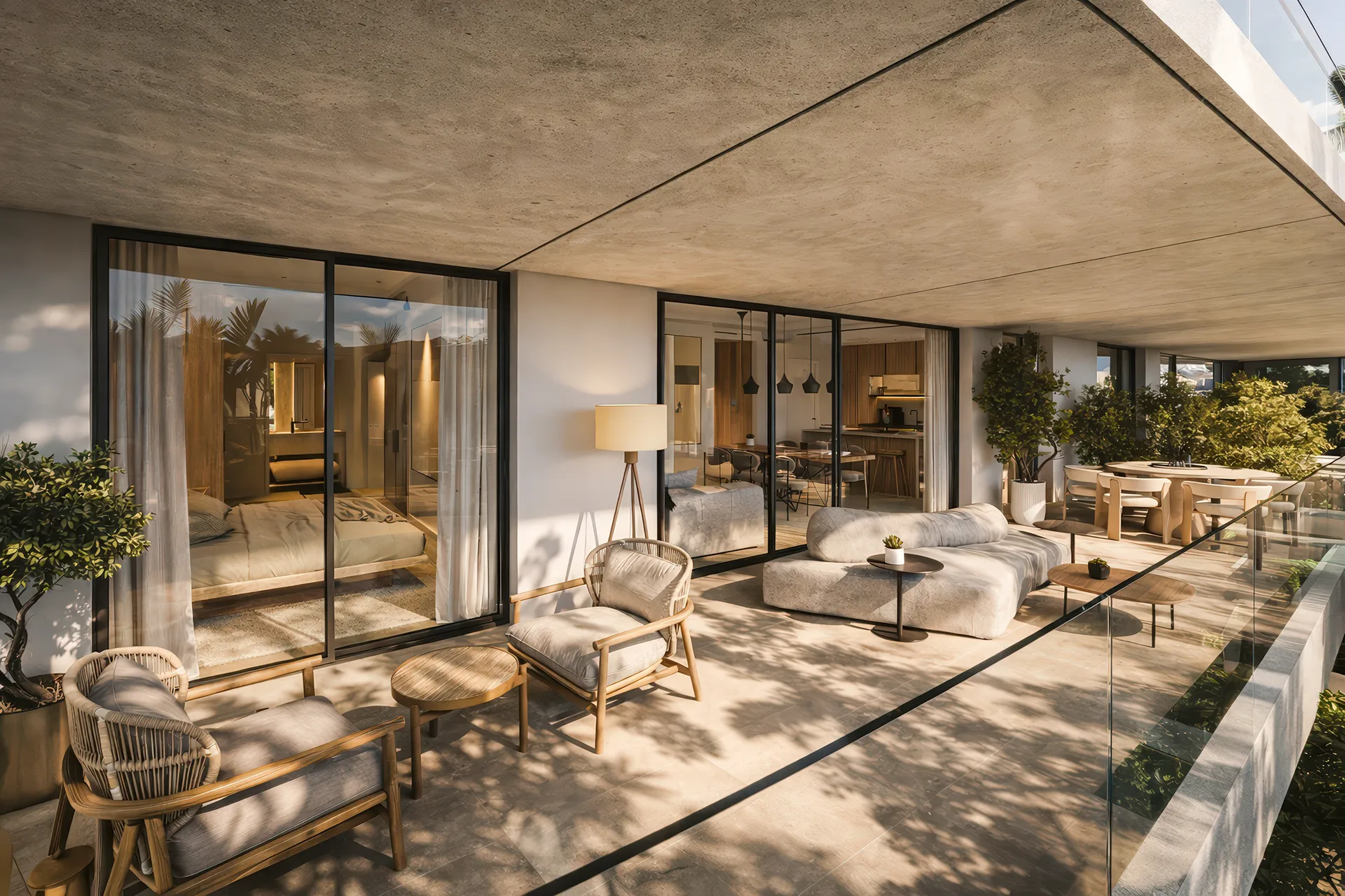 Oferta obejmuje jednostki od 1 do 4 sypialni o powierzchniach od 51 m² do 148 m², co pozwala na znalezienie przestrzeni idealnie dopasowanej do indywidualnego stylu życia. Każdy apartament posiada funkcjonalny układ rodzinny, w którym sercem domu jest salon płynnie przechodzący w obszerny taras, co pozwala na celebrowanie kolacji przy zachodzie słońca niemal przez cały rok. Design oparty na przeszkleniach od podłogi do sufitu nie tylko doświetla wnętrza, ale nadaje im lekkości i nowoczesnego sznytu, o którym marzy wielu nabywców szukających nieruchomości w Hiszpanii. Wykorzystanie trwałych materiałów gwarantuje, że dom pozostanie estetyczny bez konieczności częstych renowacji, co przekłada się na stabilność posiadanych aktywów w długim terminie.