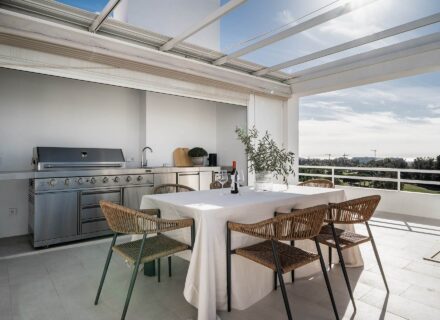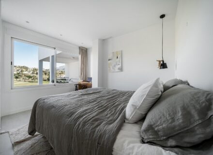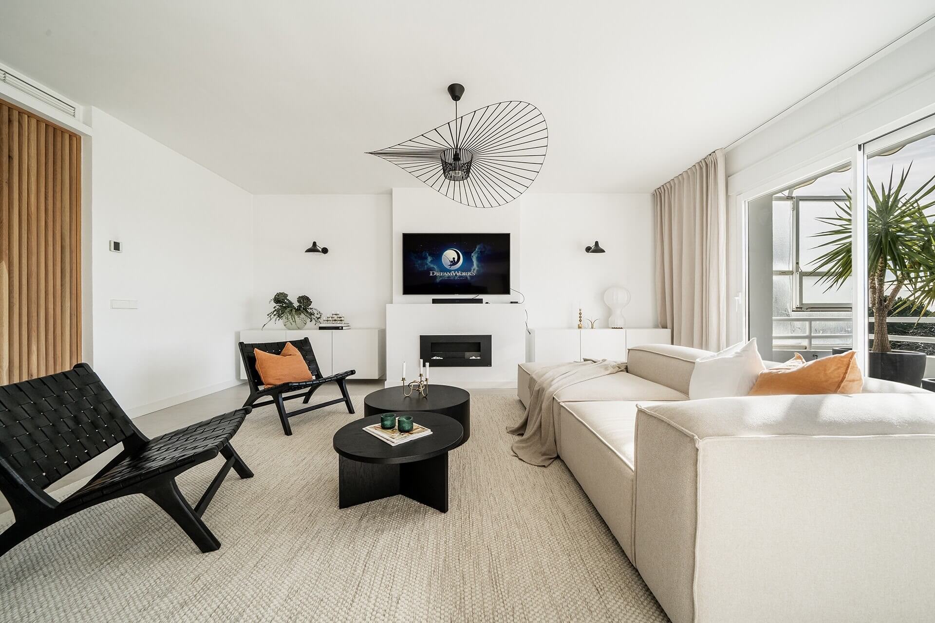 Inside the apartment, you will find a carefully designed space that exudes modern elegance. Large south-facing windows flood the interior with natural light. Consequently, the sense of spaciousness is greatly increased throughout the home. High-end finishes add a layer of sophistication and luxury to every room. As a result, the interior perfectly complements the beauty of the surrounding coast.