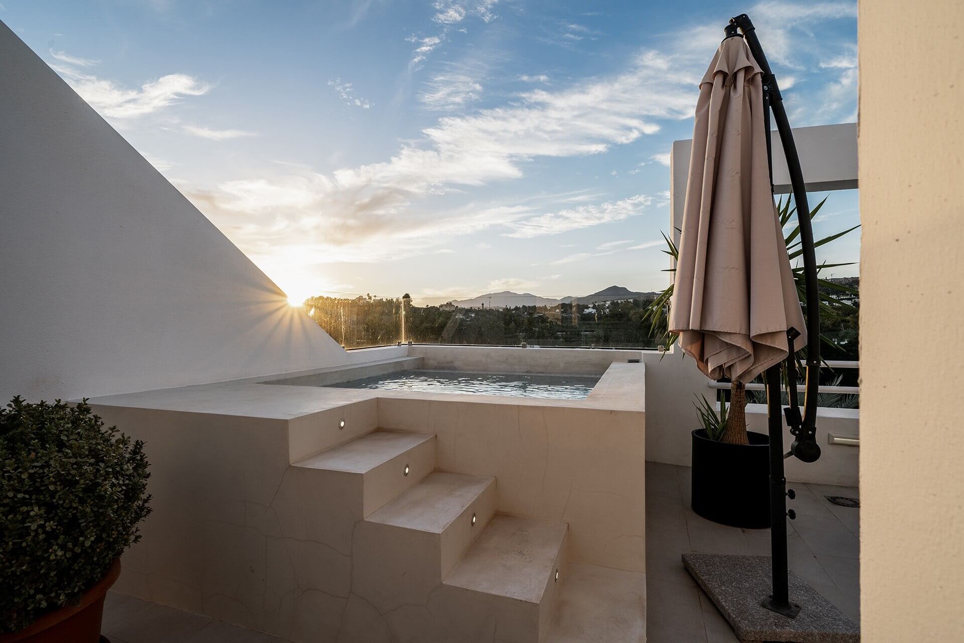 The main highlight of this beachfront apartment in Estepona is undoubtedly its spacious terrace. Notably, this outdoor area features its own private small pool. This space invites you to relax while enjoying panoramic views of the shimmering sea. Moreover, you have direct access to the beach just steps from your door. This connection to the ocean makes every morning feel like a private escape.