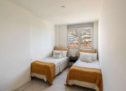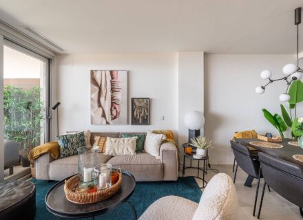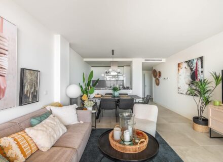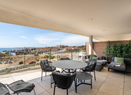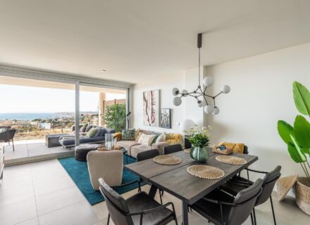 Co więcej , jasny i przestronny projekt obejmuje nowoczesną, otwartą przestrzeń dzienną. Układ idealnie łączy salon, jadalnię i kuchnię. Duże okna zapewniają naturalne światło w ciągu dnia, tworząc przytulną i komfortową przestrzeń do codziennego życia. Ponadto , ten apartament w El Higuerón idealnie nadaje się do przyjmowania gości. Nowoczesna architektura wyraźnie podkreśla luksus Costa del Sol.