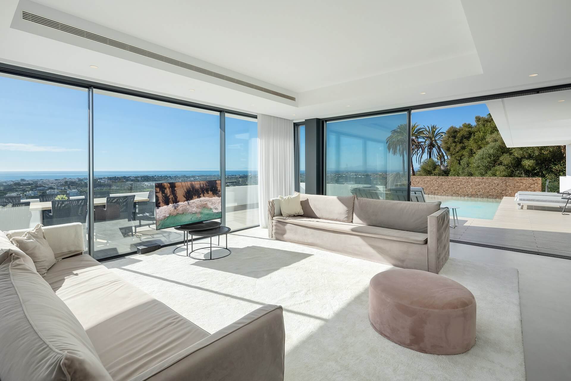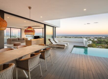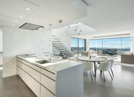 Inside the villa, the open-plan layout stands out for its harmonious connection. Moreover, floor-to-ceiling sliding glass doors invite abundant natural light into the home. Consequently, the design creates a seamless flow between the indoor and outdoor areas. Because of this layout, the functionality and aesthetics are maximized. Thus, residents can fully immerse themselves in the beauty of their surroundings. What’s more, every interior detail complements the luxury villa in Benahavís lifestyle perfectly.