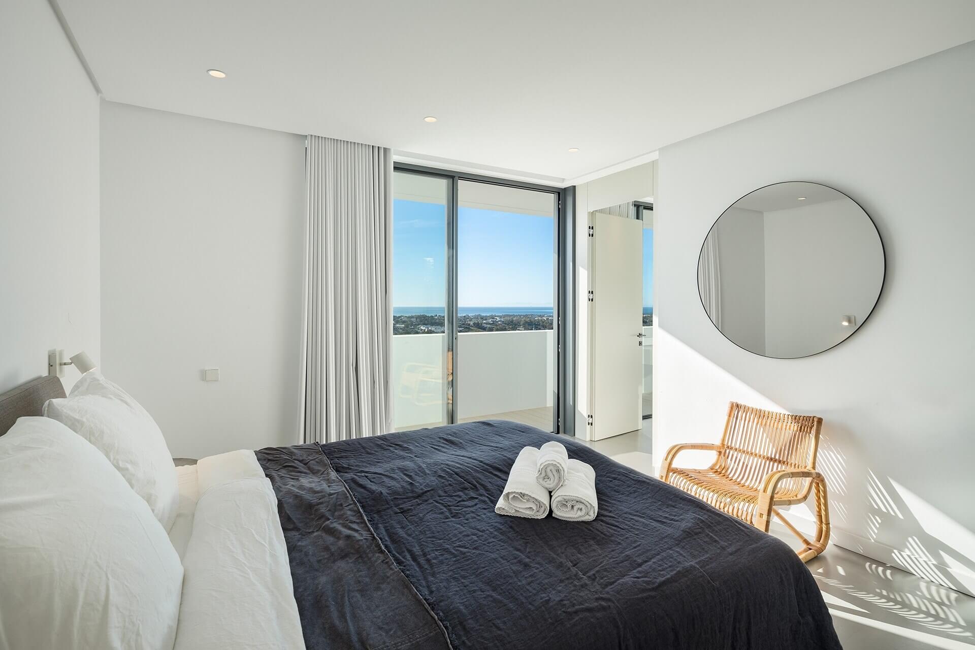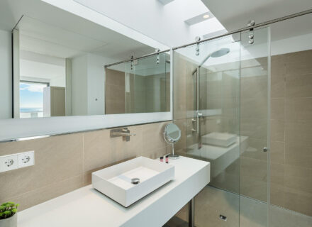 Specifically, the villa boasts four spacious bedrooms designed for ultimate privacy. Notably, the master bedroom features a private terrace with incredible Mediterranean views. Therefore, it creates a tranquil retreat to unwind after a long day. Moreover, the other bedrooms include luxurious details that cater to rest and relaxation. As a result, every resident enjoys a serene and peaceful living environment. Clearly, comfort was the main priority during the design of this luxury villa in Benahavís.