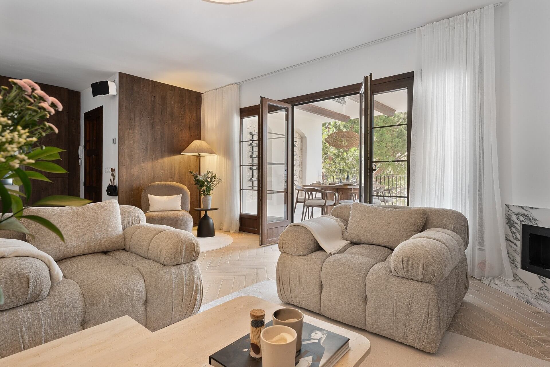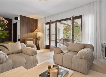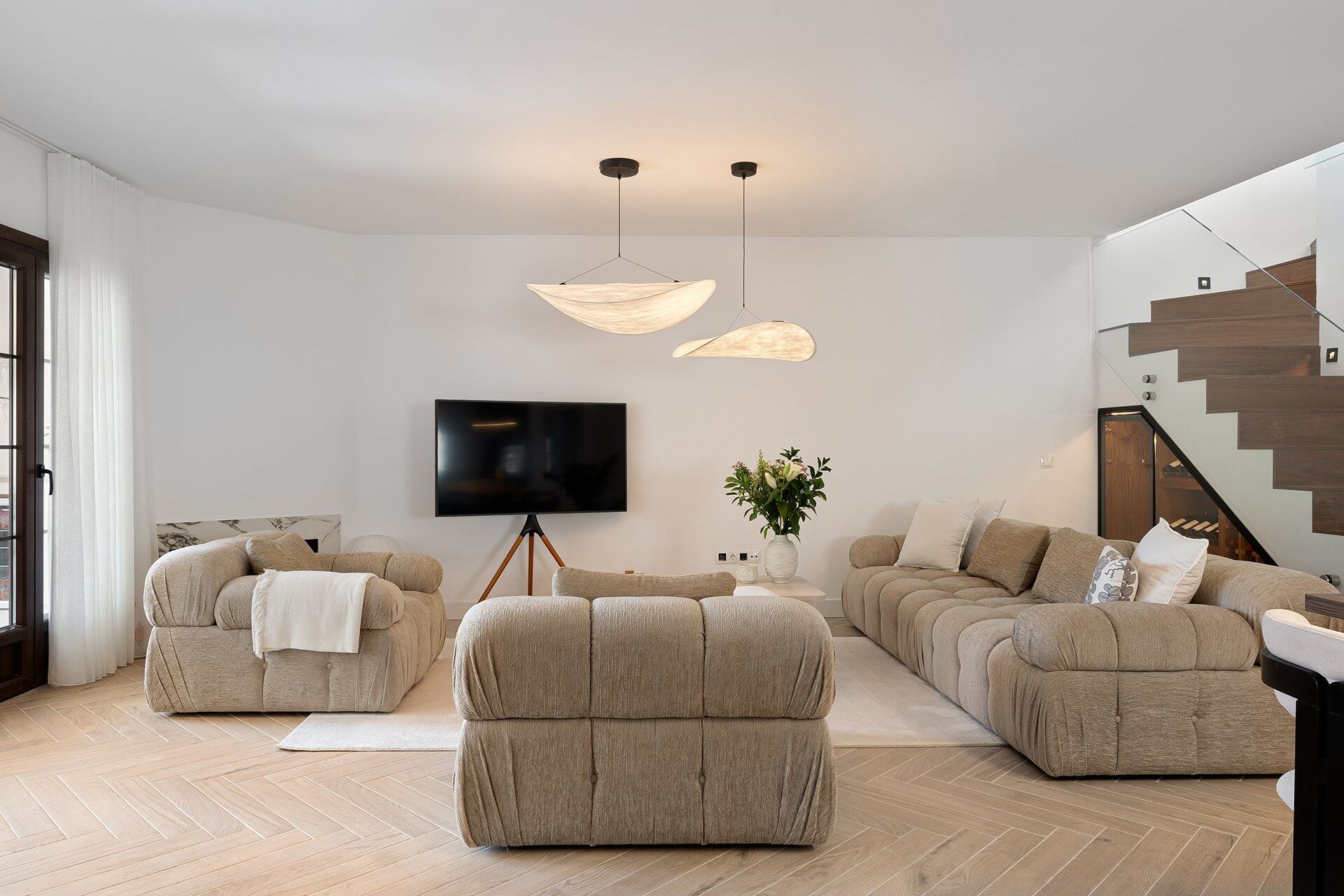 Secondly, Casa Cielo extends over a total area of 169 sqm, featuring 129 sqm of carefully designed interior space spread over two floors. Specifically, high-quality materials such as warm wood and microcement add a layer of sophistication to the living spaces. Furthermore, the property is fully furnished with sleek, modern elements, making it ready for immediate occupancy. Because the renovation focused on both aesthetics and functionality, the home feels incredibly spacious. In addition, the inclusion of stylish wallpaper highlights the unique character of the rooms. Thus, every corner of this penthouse on the Golden Mile exudes elegance.