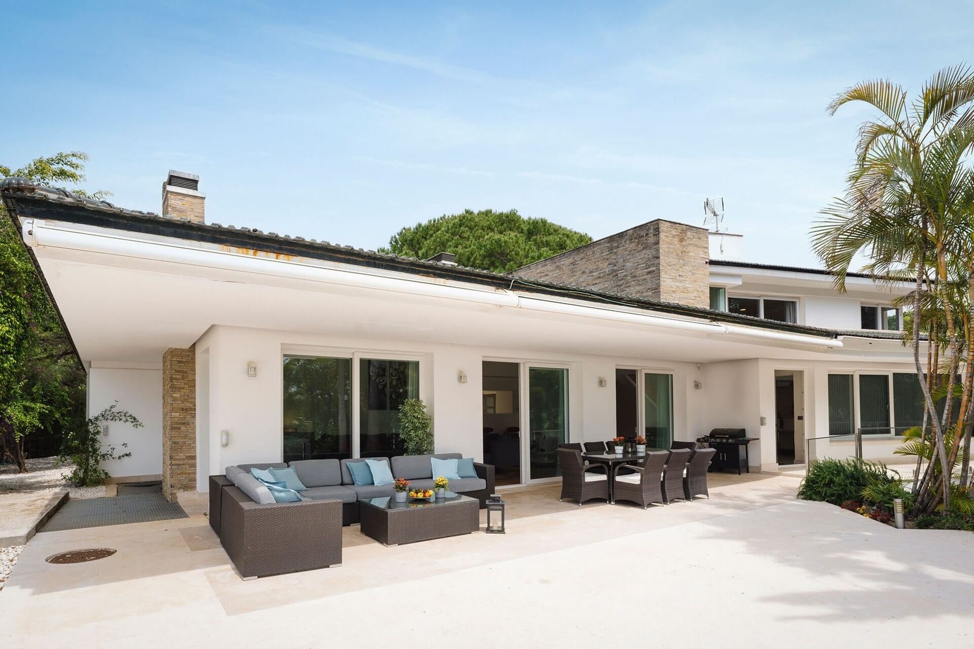 Outside, the large 100 sqm pool is complemented by a sun terrace and a dining terrace overlooking the pool, complete with an outdoor kitchen and a professional gas barbecue. The community tennis court is located about 50 meters from the house.