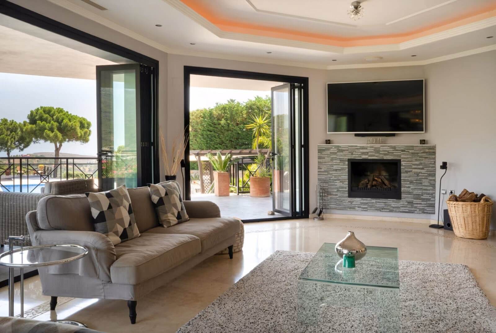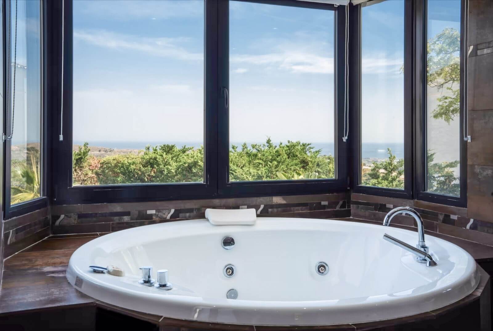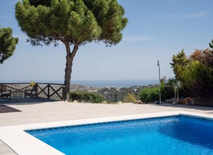 Moreover, this property was designed specifically for full relaxation and high-end entertainment. For example, it has a private pool that is ideal for enjoying the warm Spanish sun. Similarly, the garden provides a peaceful outdoor retreat surrounded by nature. Because the property includes a private cinema room and a gym, you have everything you need for leisure. Thus, this villa for sale in Monte Mayor offers a complete lifestyle experience. Indeed, the panoramic sea and mountain views add a special charm to every room.