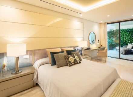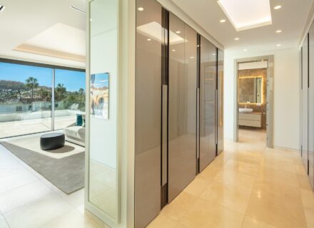 Upstairs, this villa in La Cerquilla offers several elegant bedrooms. Notably, these rooms overlook the lush greens of Los Naranjos Golf. Each bedroom is designed to offer maximum comfort and luxury. Moreover, the windows provide serene and picturesque views every morning. As a result, the upper floor serves as a restful retreat for family and guests alike.