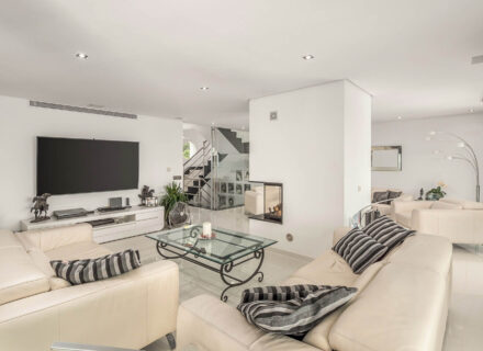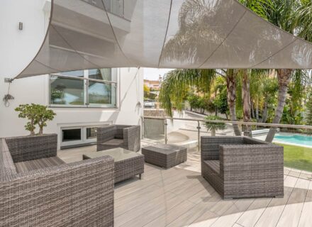 The residence is divided into three levels and built with premium materials. Specifically, this villa in Seghers Estepona features bright, open-plan living areas that maximize natural light. The designer bedrooms and bathrooms offer a sense of luxury, while the kitchen is fully furnished with high-end appliances. Moreover, the seamless layout creates an inviting atmosphere throughout the entire home. Every detail reflects a commitment to quality and sophisticated architectural design.