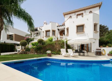 To complete the luxurious experience, a private pool awaits in the charming, mature garden. Specifically, this area serves as a tranquil oasis to relax and soak up the sun in total privacy. The gated driveway can accommodate two to three cars, ensuring both convenience and security. Indeed, living in this villa in Valle Romano Estepona means enjoying a blend of Andalusian style and modern comfort.