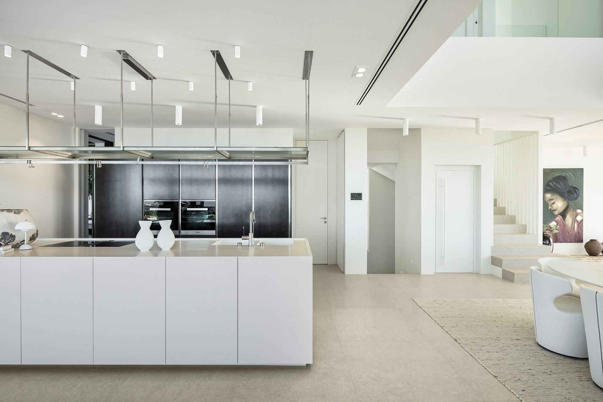 Besides the living areas, the property offers six spacious bedrooms, each featuring its own private en-suite bathroom. Notably, this setup ensures complete comfort and tranquility for all family members and guests. Furthermore, an elevator connects all floors, making access to every level easy and convenient. Because the basement includes a private gym and a TV lounge, the home offers excellent wellness facilities. In addition, the architects perfectly balanced modern simplicity with timeless elegance in every room. Thus, this modern property in Marbella area provides a luxurious sanctuary for its residents.