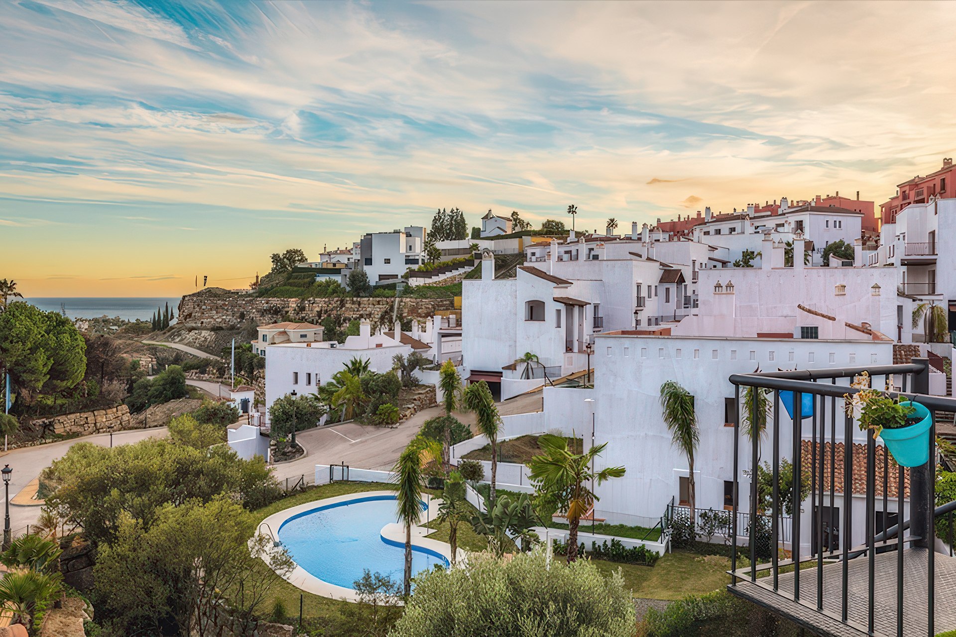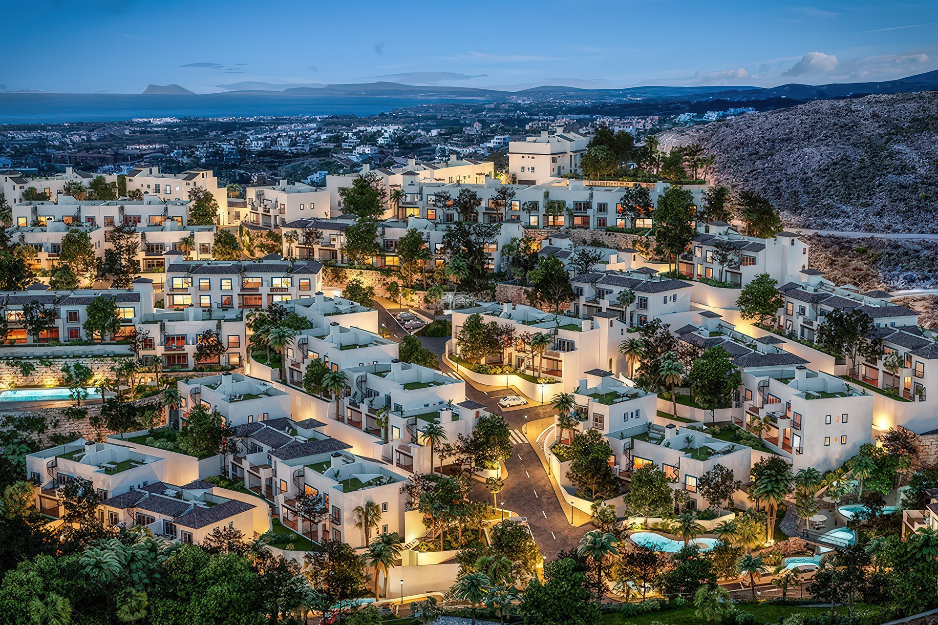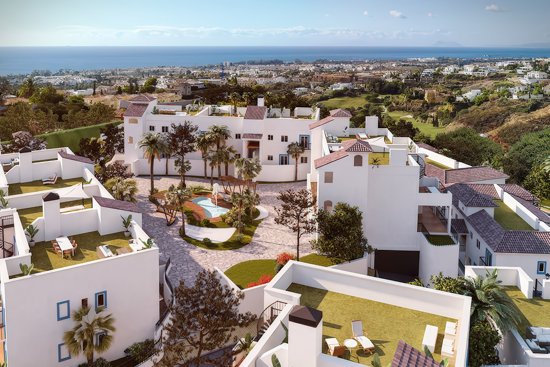 Inwestycja znajduje się w zielonej części gminy Benahavís, słynącej z wybitnej kuchni i prestiżu. Ta inwestycja w stylu hiszpańskiego pueblo została zaprojektowana tak, aby zapewnić domownikom pełną prywatność. Po pierwsze, lokalizacja pozwala na szybkie dotarcie do luksusowych sklepów w Puerto Banús. Po drugie, lotnisko w Maladze jest oddalone o niespełna godzinę drogi. Dlatego kompleks stanowi doskonałą bazę wypadową dla osób ceniących bliskość natury oraz wygodną komunikację.