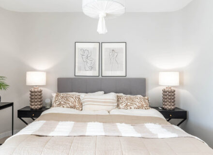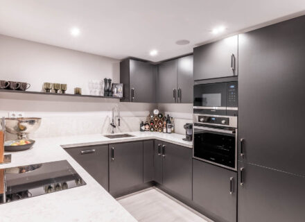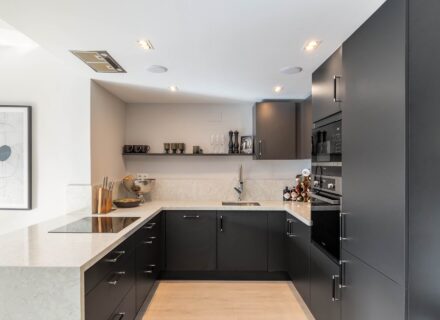 Jeśli chodzi o wnętrze, przestronny salon z otwartą kuchnią tworzy elegancką przestrzeń wypełnioną naturalnym światłem. Ten odnowiony apartament wyposażono w wysokiej klasy sprzęt AGD marki Siemens oraz stylowy barek śniadaniowy. Dodatkowo główna sypialnia posiada łazienkę en-suite z ogrzewaniem podłogowym, co zapewnia domownikom najwyższy komfort. Każdy detal, który oferuje ten obiekt, podkreśla nowoczesną estetykę wnętrz.